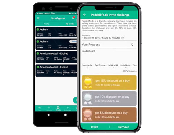 Use the app, be active and have fun with your friends! Participate in activity challenges and get for instance a 10%, 20% or 50% discount coupon you can use on products from activity challenges partner of the month.